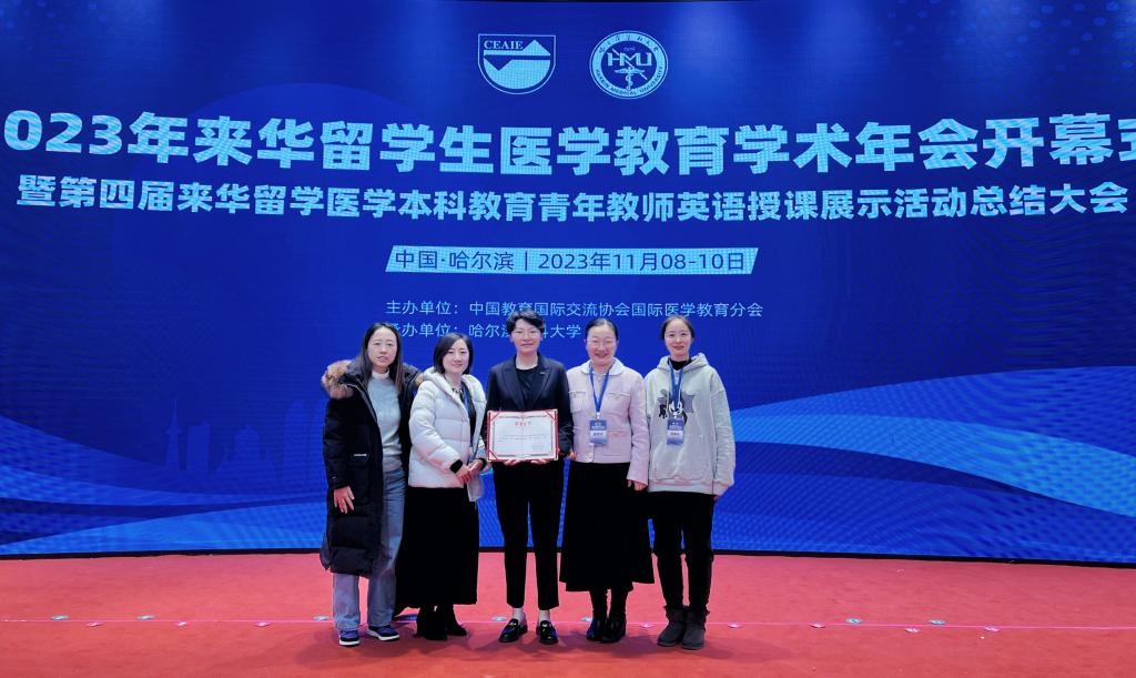 11月8日,由中国教育国际交流协会国际医学教育分会主办、哈尔滨医科大学承办的第四届来华留学医学本科教育青年教师英语授课展示活动在黑龙江哈尔滨举行,我校代表董畅老师在本次活动中荣获英语授课能手的荣誉称号。