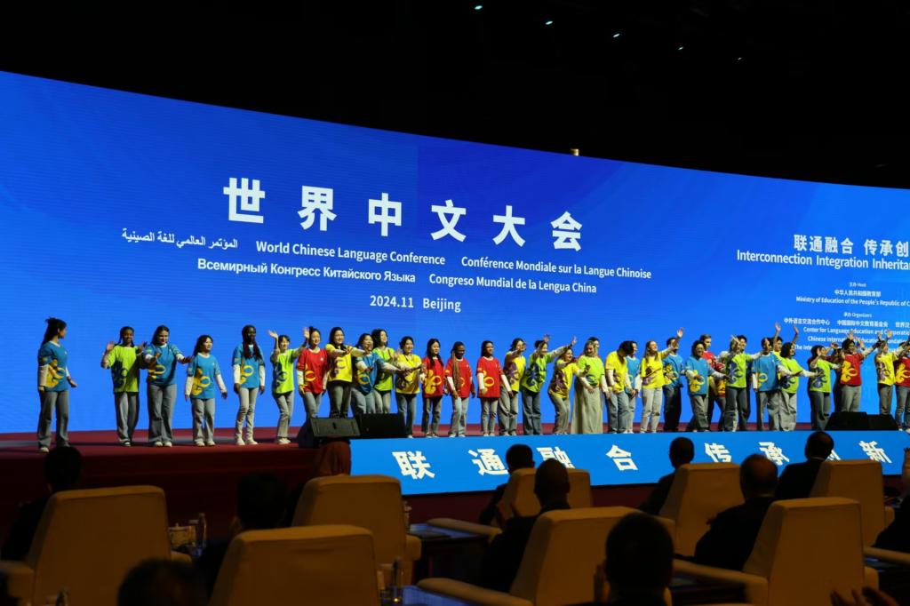 11月15日至17日,由教育部主办的“2024世界中文大会”在北京国家会议中心举行,大会以“联通融合 传承创新”为主题,来自160余个国家和地区的2000多名政府官员、校长、专家学者、师生代表和驻华使节等汇聚一堂,共同探讨国际中文教育高质量发展。