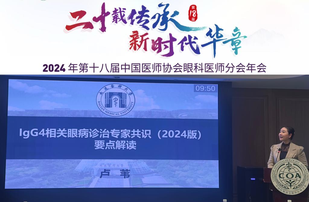 其中我校中美眼整形眼眶病研究中心主任卢苇教授应邀出席本次大会,并做了题目为“IgG4相关眼病诊治专家共识(2024版)要点解读”的专题发言,向与会的各位同道介绍了由我中心执笔并刚刚发表的《IgG4相关眼病诊治专家共识(2024版)》及对该类复杂疾病的诊疗探索经验,并号召在场的专家同道们共同努力做好共识的宣传和普及,得到了在场听众的积极响应。