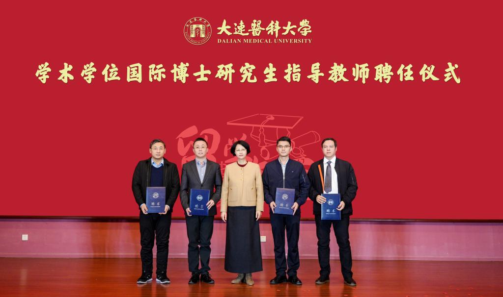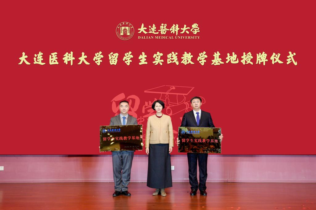 在第三届导师大会上,校长刘莹为汪洋、王超、杨庆凯、李盛4名教授颁发了学术学位国际博士研究生导师证书,并授牌2个大连医科大学留学生实践教学基地。