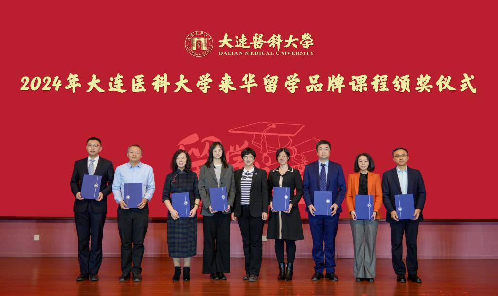 副校长邵淑娟颁发大连医科大学留学生教学指导委员会聘书、以及2024年大连医科大学来华留学品牌课程证书。