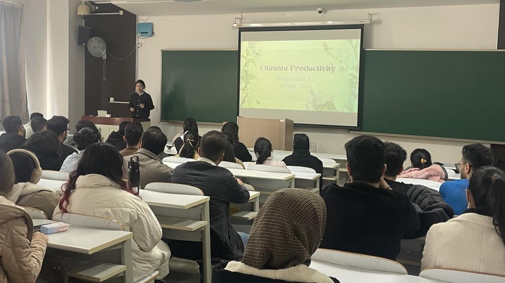 分享会上,来自临床医学专业的中国学生苏永恩博和乔静怡分别结合自身丰富扎实的学习经历,为在场的留学生们带来了一场干货满满的分享盛宴。他们深入浅出地阐述了如何在繁忙的医学专业课程中,有效提升外语语言能力,同时保持良好的学习状态。他们强调了日常积累、定期复习以及积极参与英语实践活动的重要性,为在场的留学生们提供了实用的学习方法和策略,点亮了他们在异国他乡求学之路前行的灯塔。
