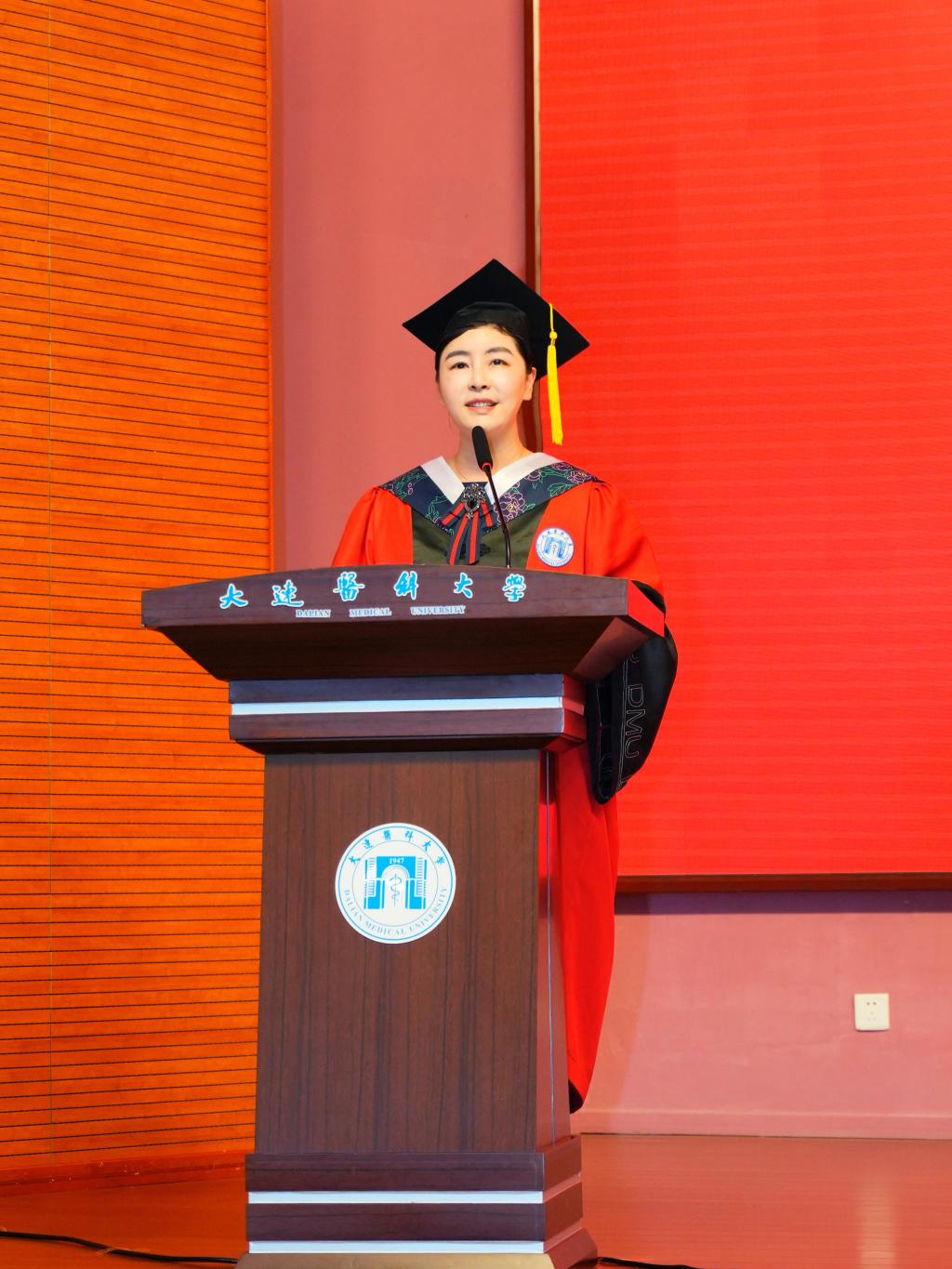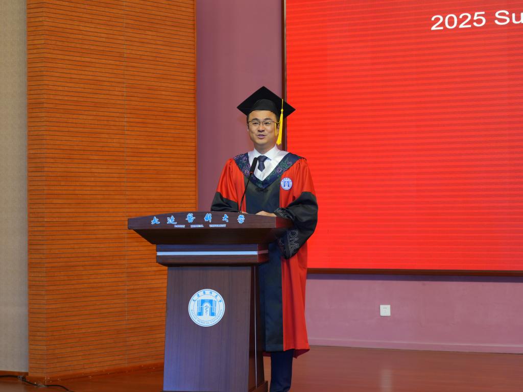 院长卢苇宣读了《关于颁发大连医科大学2025届(夏季)国际学生毕业证书和授予2025届(夏季)国际学生博士、硕士、学士学位的决定》。