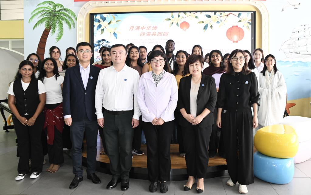 节目表演结束后,活动进入温馨的茶话会环节。现场摆放了各色月饼、新鲜水果等节令食品,师生围坐在一起,一边品尝美食,一边畅谈生活与学习中的趣事。大家用中文、英文以及各自的母语交流着对中秋的感受,分享着家乡的节日习俗,在轻松愉快的氛围中,进一步拉近了彼此的距离。活动最后,全体师生共同拍摄“中秋全家福”,镜头定格下一张张灿烂的笑脸,也记录下这场跨越国界的团圆时刻,为此次中秋活动留下了珍贵的回忆。