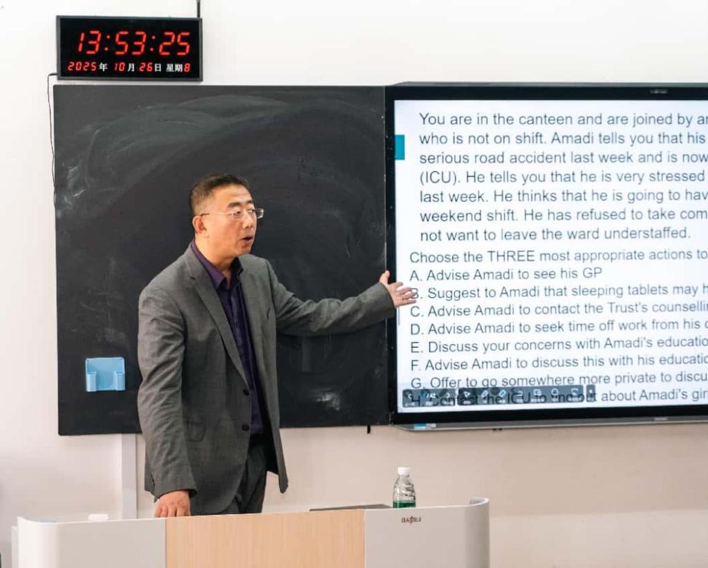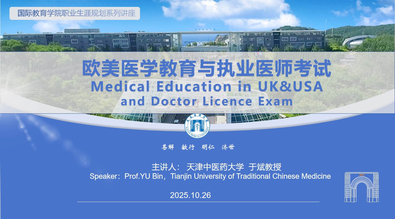 楼G111教室成功举办了首期留学生职业生涯规划专题讲座。此次讲座特邀天津中医药大学于斌教授,以“欧美医学教育体系及执业医师考试”为主题,为来自20多个国家的200余名留学生带来了一场内容丰富、实用性强的专业指导。