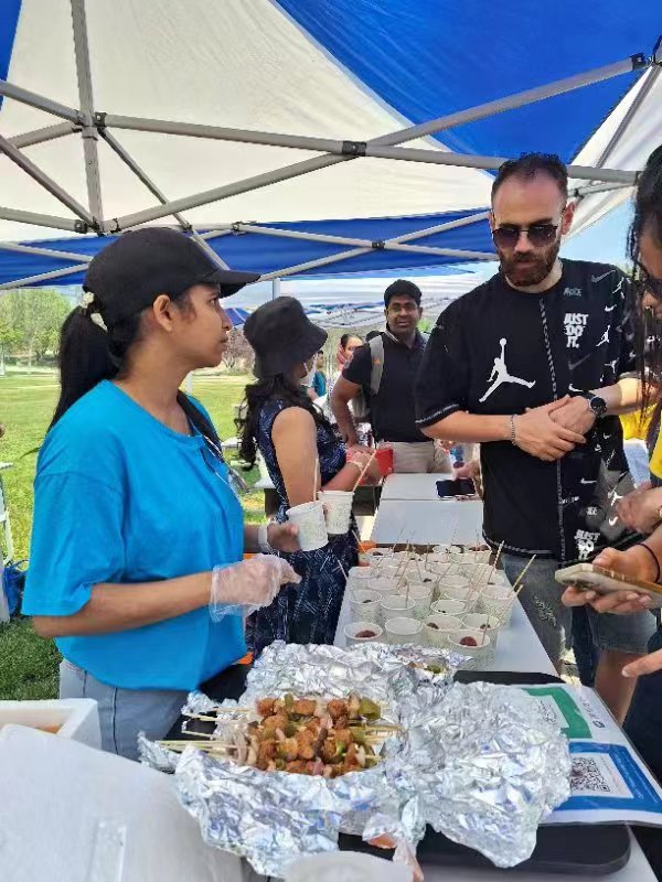 斯里兰卡烤肉串,伊朗蔬菜面条汤,巴基斯坦比尔亚尼菜饭,印度鸡肉卷,南非肉桂卷,充满各国浓郁特色的美食让师生们味蕾大开,争相购买品尝。